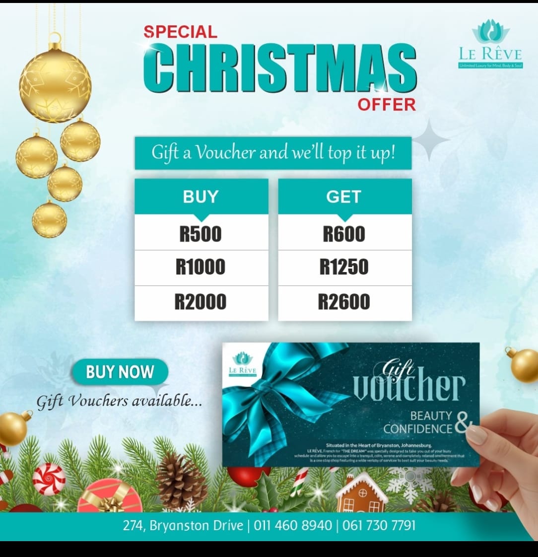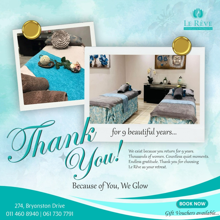 Le Rêve, french for “THE DREAM” was specially designed to take you out of your busy schedule and allow you to escape into a tranquil, calm, serene and completely relaxed environment that is a one stop shop featuring a wide variety of services to best suit your beauty needs. Whether it be a relaxing deep tissue oil massage, a therapeutic facial treatment or a full body grape/thyme scrub or wrap, our highly trained therapists will deliver you a luxurious experience. Relax in our steam room, have a pampering shower, step into our Hair Salon and get blown away and if that’s not enough then spoil yourself to a mani/pedi. Further indulge in a light snack or have a smoothie at our Café. Visit our Boutiques on your way out for all the products you need to keep your hair and skin looking radiant